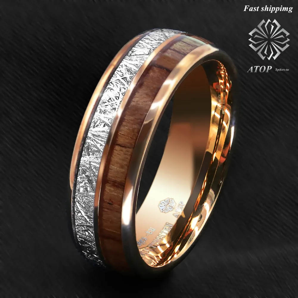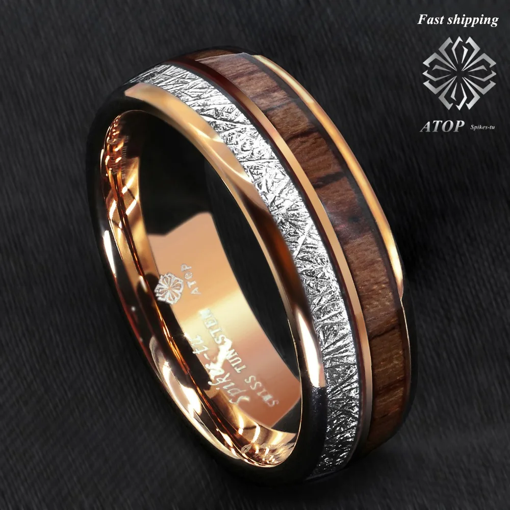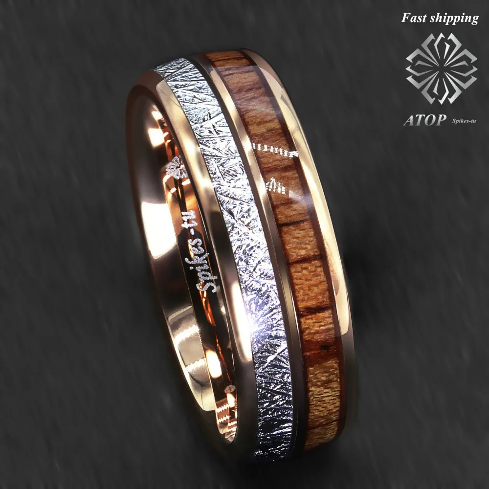 8 мм розовое золото КУПОЛ Вольфрам кольцо серебро Koa дерево инкрустация Свадебные ATOP мужские ювелирные изделия Индивидуальные ювелирные изделия