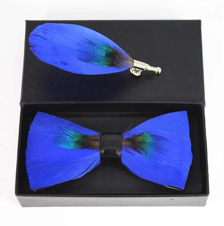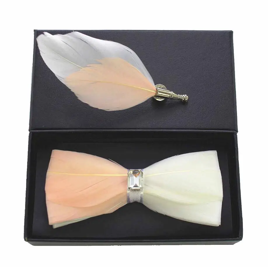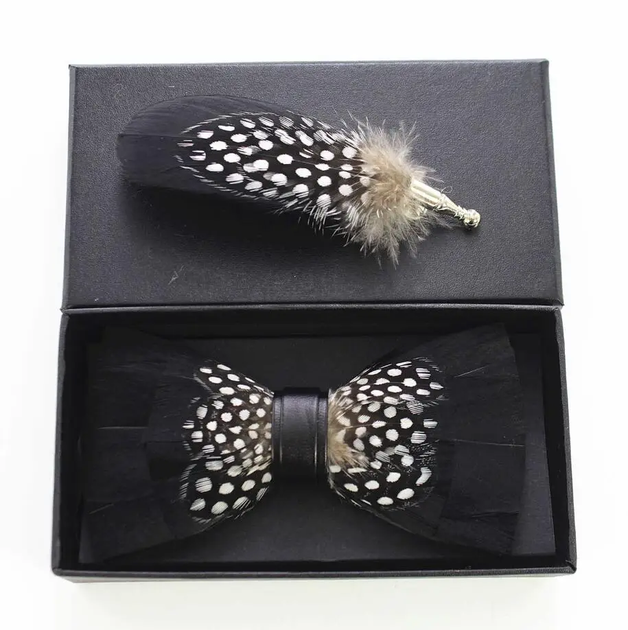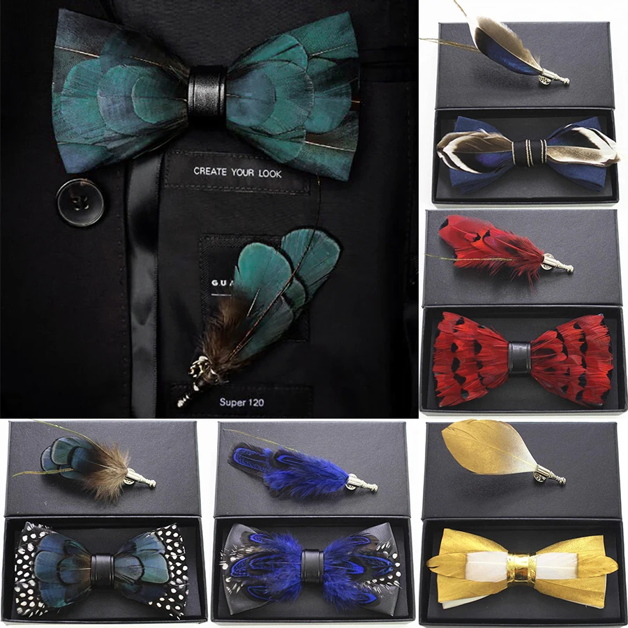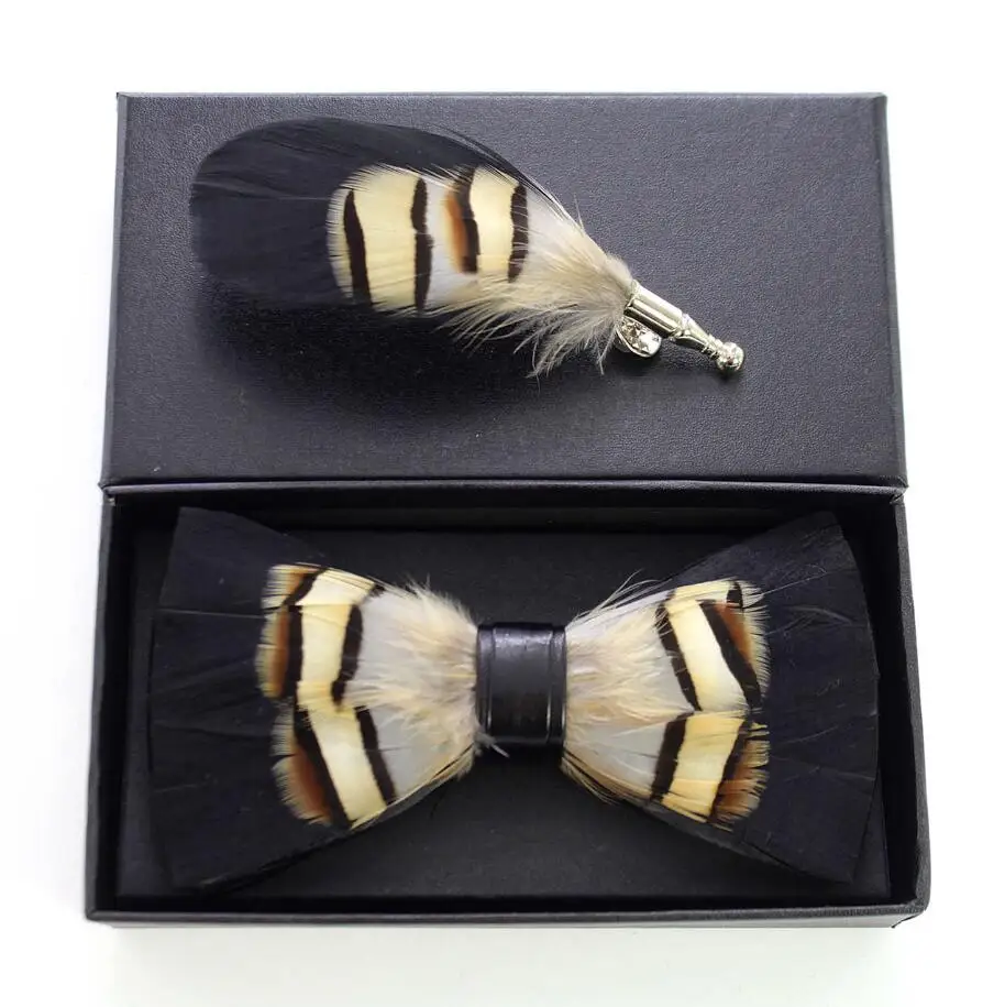 Мужская брошь-бабочка Ricnais, ювелирный набор из натурального перьев и птиц, аксессуар для жениха с коробкой в подарок