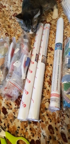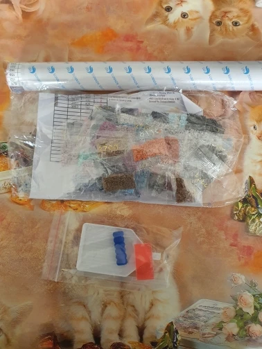 Довольна приобритением, стразы в зип пакетах, полотно на валике, размер соответствует, стразы с запасом. Продовца рекомендую. Посылка пришла быстро.