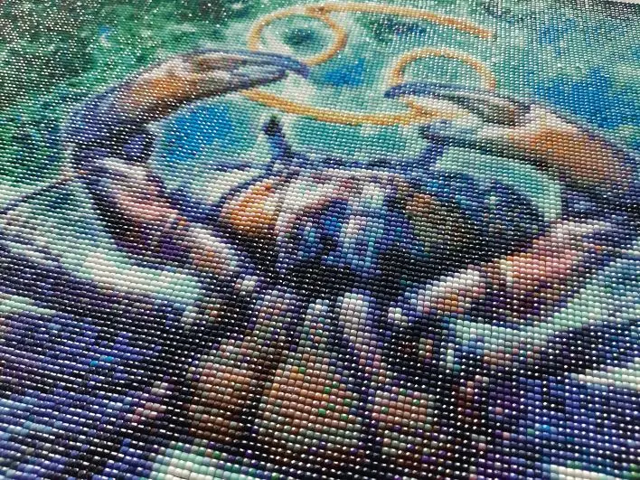 6. После завершения слегка прижмите бриллианты рукой или книгой, чтобы крепко прикрепить их.