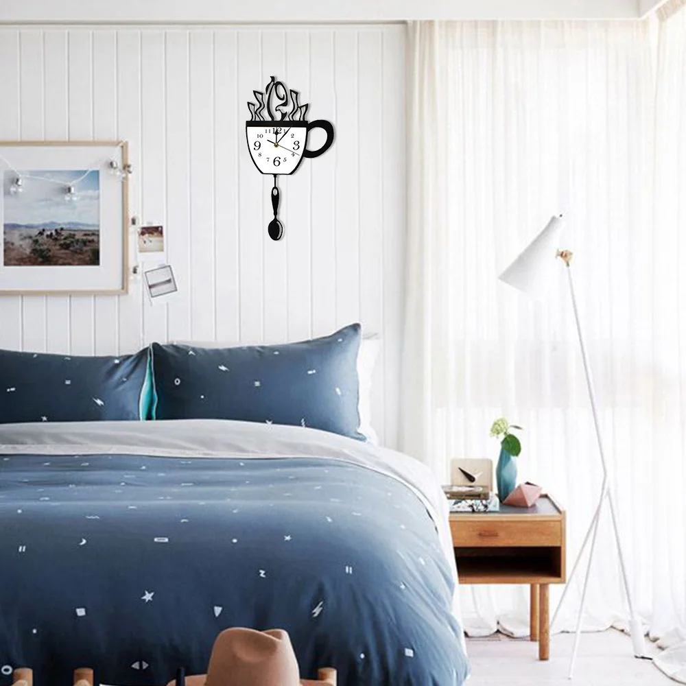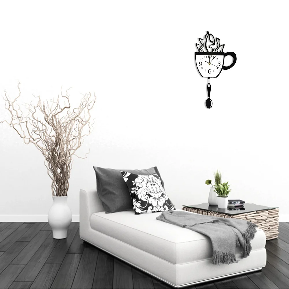 Чашка кофе и ложка креативные маятниковые настенные часы современный дизайн кухонные настенные часы настенное Искусство Декор для кафе, магазина, комнаты