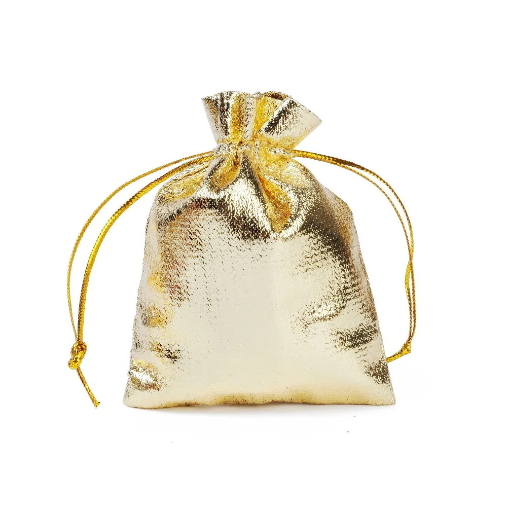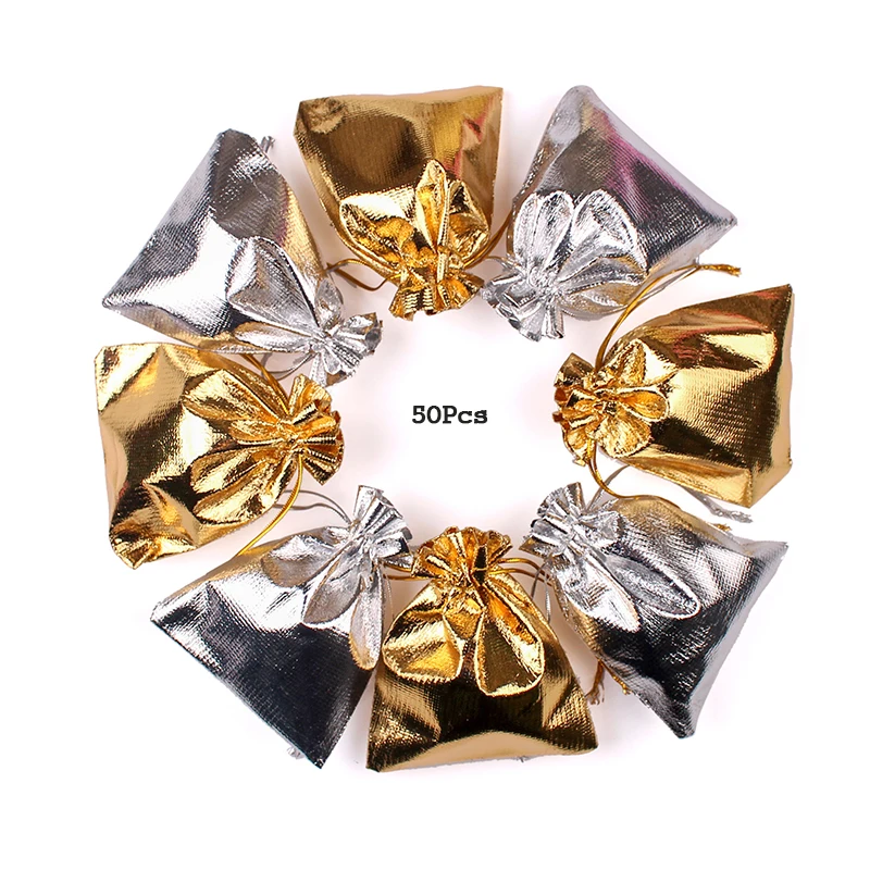 50 шт.лот 7x9 9x12 см 10x15 13x18 см золотистые и Серебристые подарочные пакеты на шнурке для ювелирных украшений бархатный мешочек