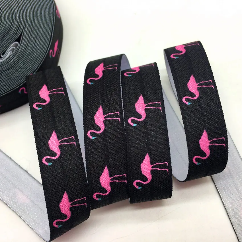 10 ярдов 5/8 "Розовый фламинго печать складки над эластичным черным врагом Ленточные аксессуары для одежды DIY головной убор эластичная лента