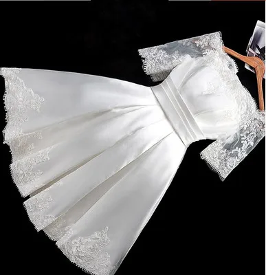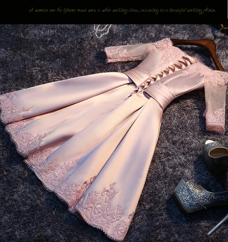 Половина рукава с вырезом "лодочка" атласное платье для выпускного вечера без рукавов нарядное кружевное платье цвета шампань красный, зеленый, розовый и белый цвет, Короткие Платья для подружек невесты свадебное праздничное платье