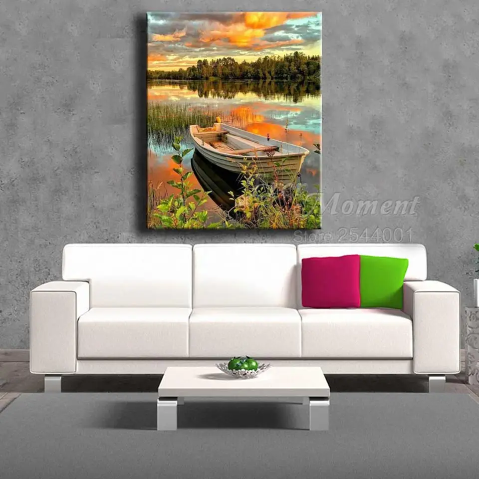 Ever Moment 5D DIY Алмазная картина, вышивка крестиком, лодка на реке, мозаика, полностью квадратные дрели, стразы ASF1214