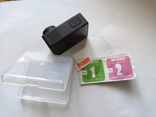 Отличное защитное стеклышко. Пришло в плотном пластмассовом боксе. Комплект состоит из салфеток для протирки экрана перед и самого стекла. Идеально подошло для, экш камеры sg cam s8 pro.