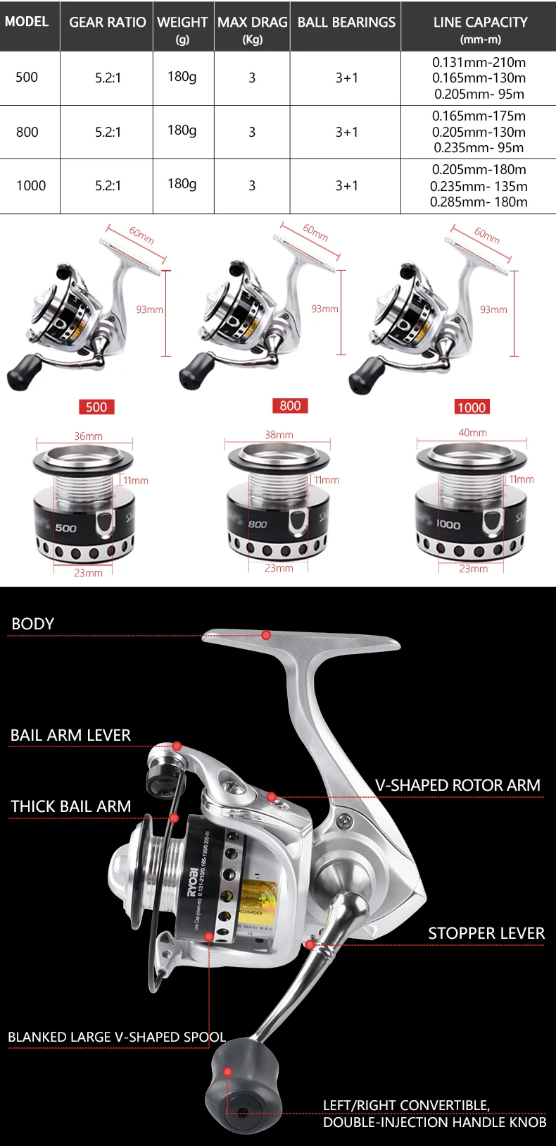 Рыболовные катушки RYOBI SMAP MINI 500 800 1000, рыболовные спиннинговые Катушки 3 + 1BB, передача: 1, Максимальное сопротивление 3 кг, морские катушки, водонепроницаемые рыболовные катушки