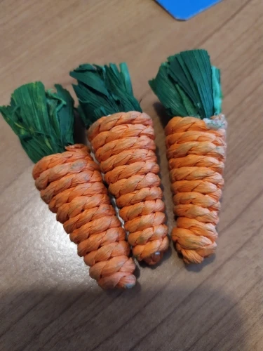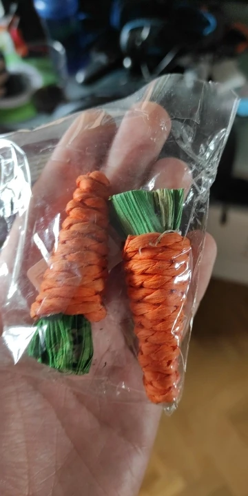 немного торчит клей, сами морковки красивые, но кролик даже не притронулся, жалко (