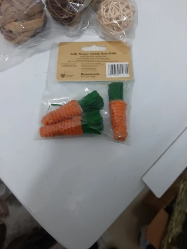 Говорит, что это для кошек, это было куплено для кроликов. Это в неправильной упаковке, потому что это четко не веревочные шарики, но это может сбивать с толпы людей. Они также немного грубые и имеют клей на верхней части. (См. Изображение)