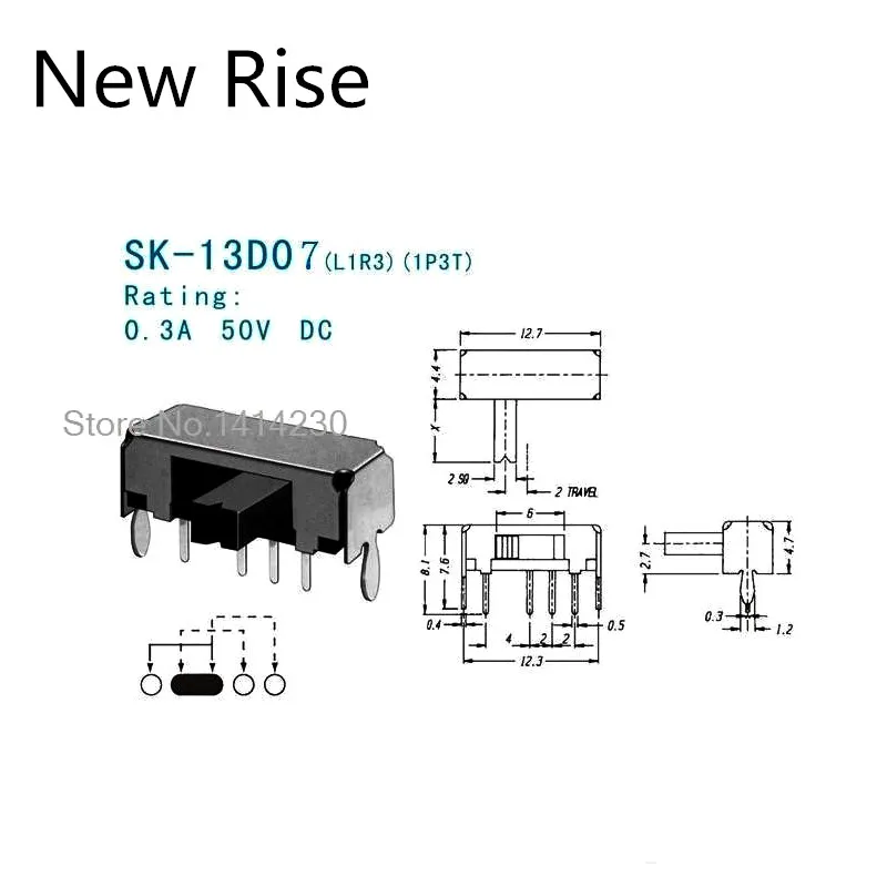 10 шт. SK13D07VG4 DC 50 в 0,5 А 4-контактная печатная плата 3 позиции SP3T 1P3T мини-переключатель слайдов под прямым углом 4 мм ручка высотой