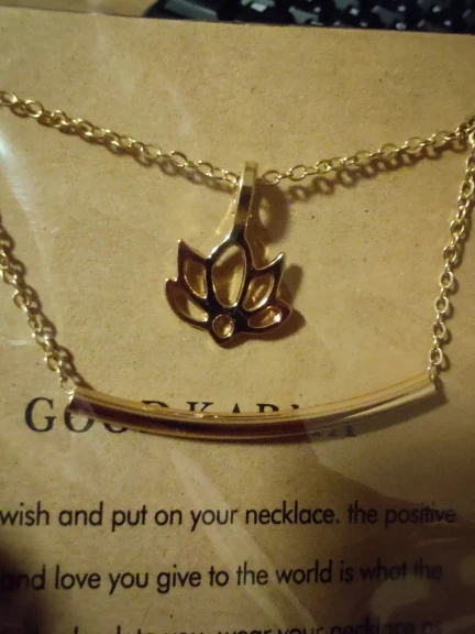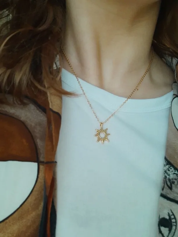 Милое колье-медальйон. Заказывала во второй раз сразу 2 штуки. :) Предыдущее потемнело где-то за полгода регулярной носки. Цвет - красивый золотой. Из недостатков - на одном кулоне с обратной стороны неровности, за что я сняла одну звезду. Доставка до Киева 4 недели. Цена очень приятная, тч рекомендую к покупке ;)