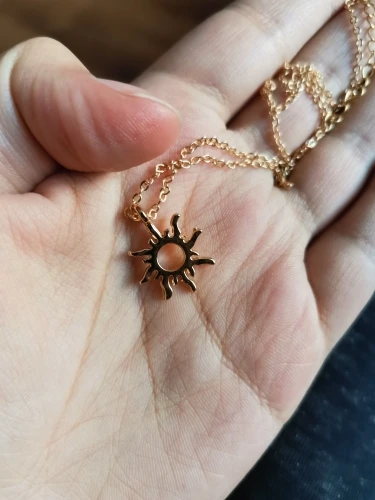 Женская цепочка золотистого цвета с подвеской в виде солнца и перьев