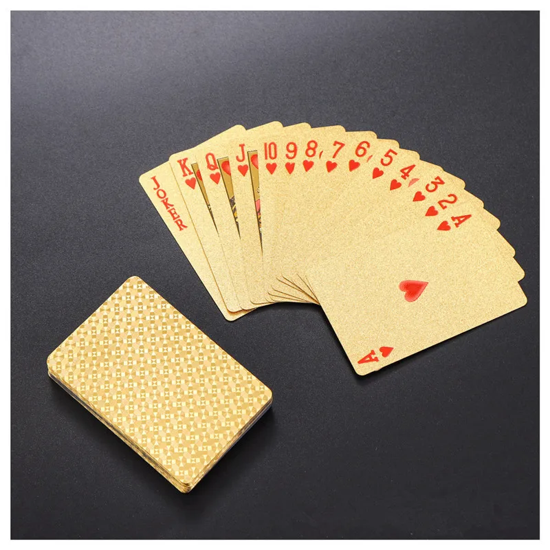 Водонепроницаемый с покрытыем цвета чистого 24 каратного золота игральных карт игры в покер класса люкс колода Золотая Фольга покерный набор Пластик магические карты азартные игры долговечные карты магия