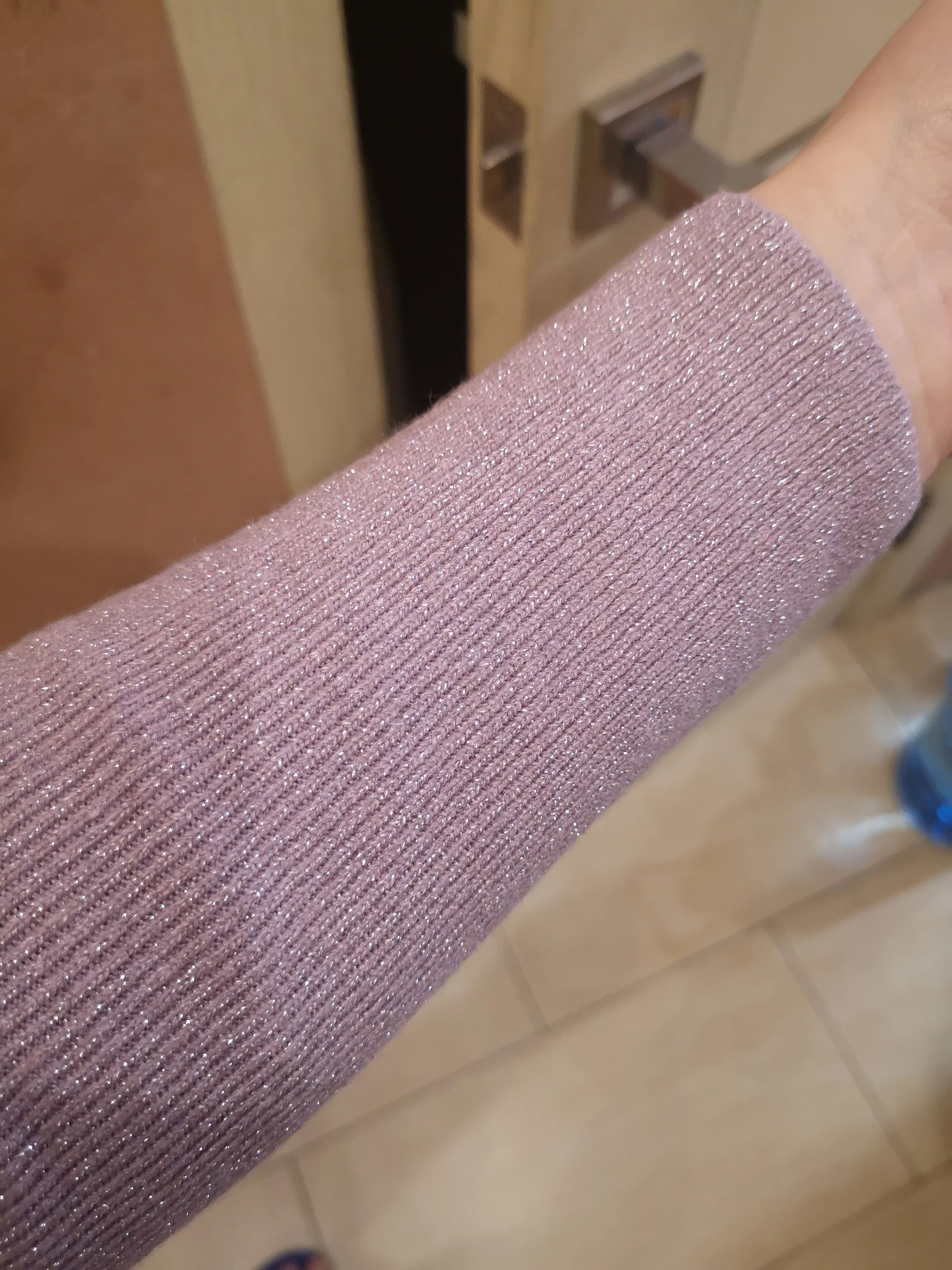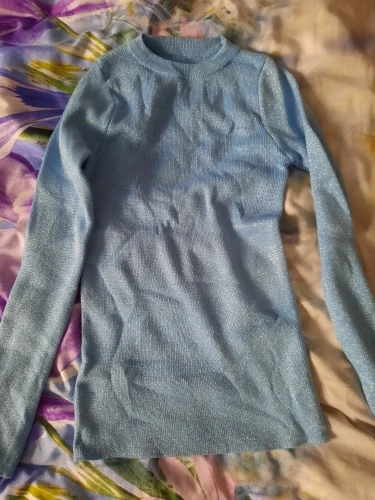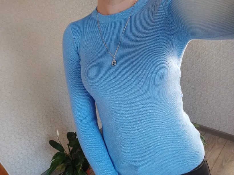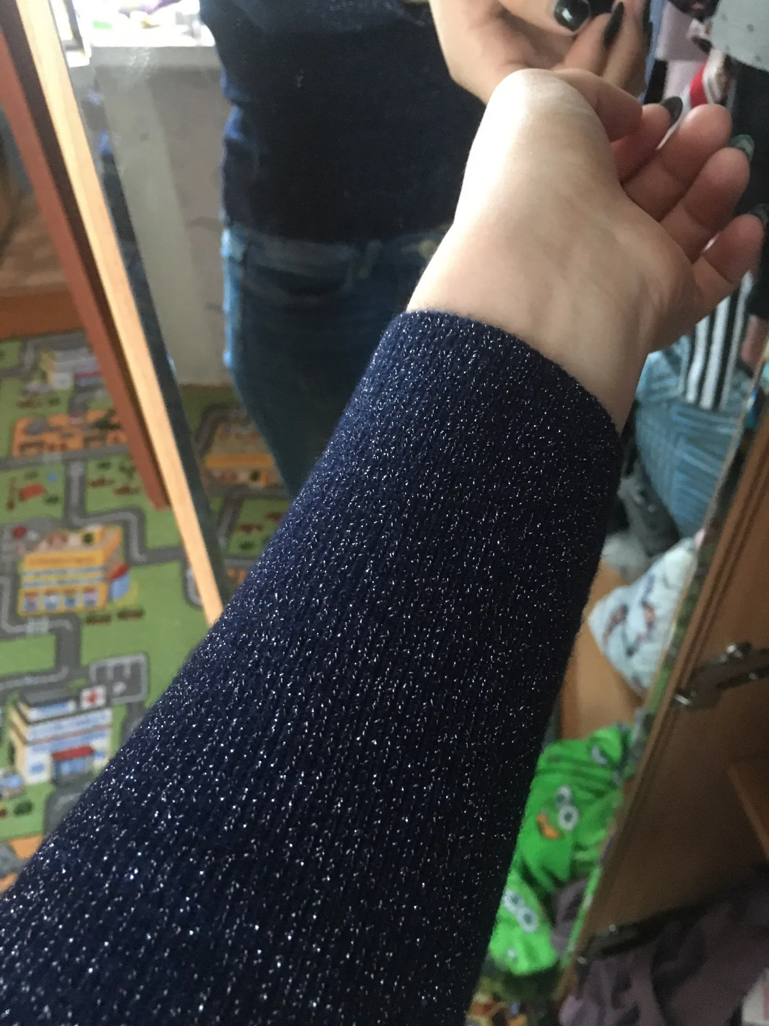 Свитер в точности как на картинке, размер 42 русский взяла S ку. Немного правда узковат разрез на шее. Кофта немного поблескивает