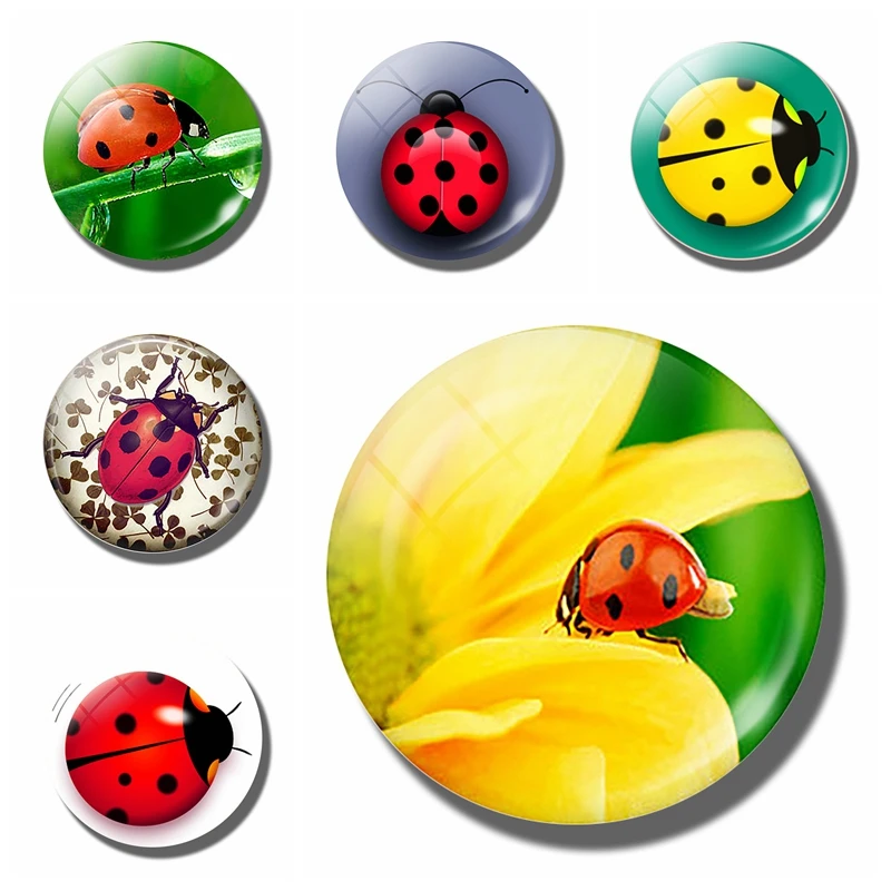 Цветные магниты на холодильник божья коровка, стеклянная выпуклая м...