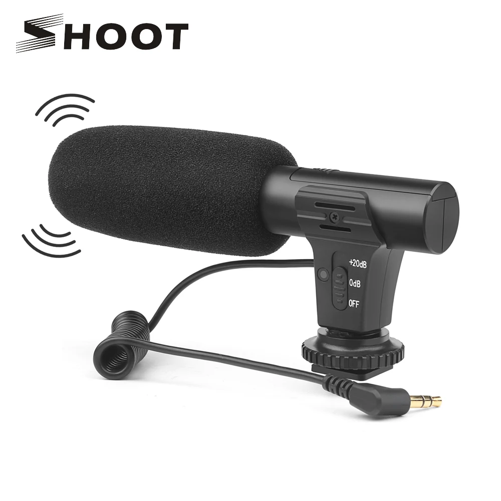 Внешний Стерео конденсаторный микрофон SHOOT 3,5 мм, микрофон для цифровой зеркальной камеры Nikon Canon Sony, микрофон для видеозаписи и интервью