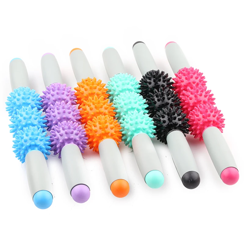 Тренажерный зал массажный ролик для мышц палка Для Йоги массаж тела Расслабляющий инструмент мышечные роликовые палочки с 3-точечным шипованным шариком