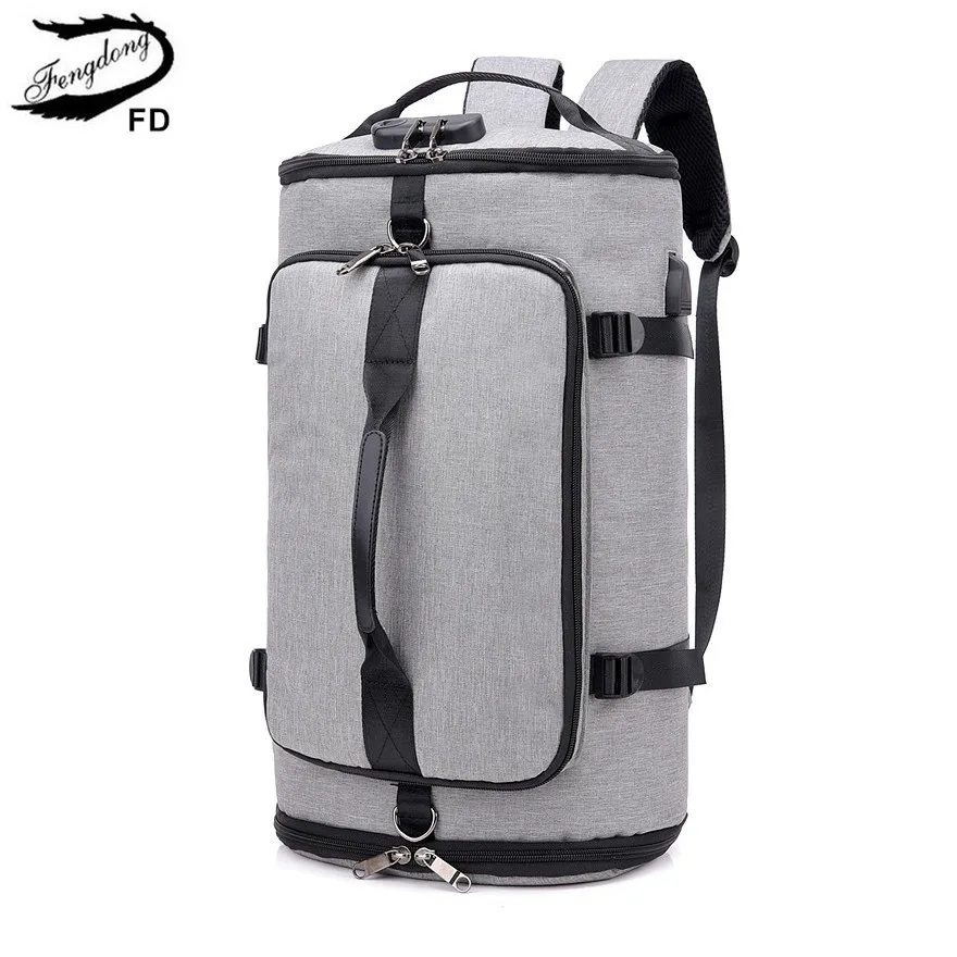 Мужской вместительный дорожный рюкзак Fengdong, черный умный рюкзак с защитой от кражи и паролем, с usb-зарядкой и ремнем для багажа