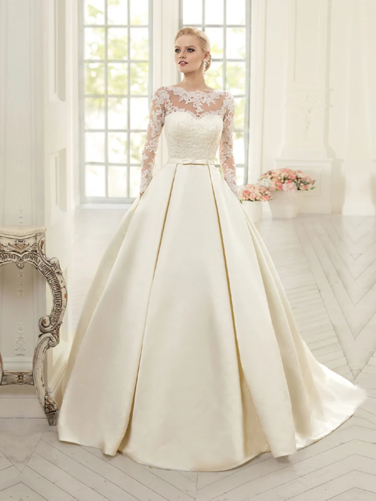 YIWUMENSA винтажное платье цвета слоновой кости из фатина с длинными рукавами свадебное платье со шнуровкой сзади дизайнерское искусственное 2021 платье для брака