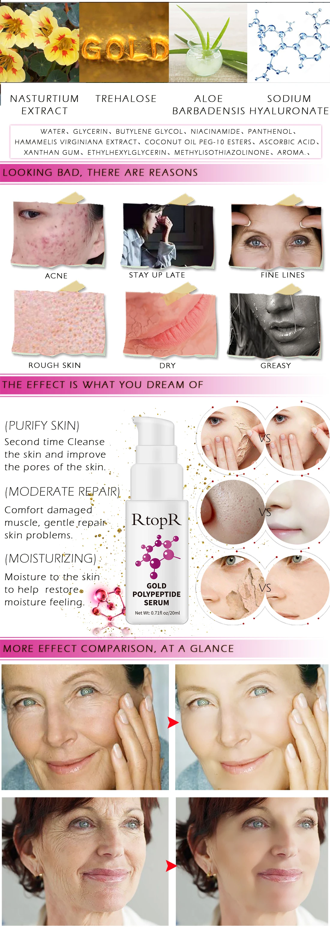 Гиалуроновая кислота сыворотка + полипептидная Золотая сыворотка 24K коллагеновая Сыворотка против старения для мужчин и женщин увлажняющий уход за кожей отбеливание