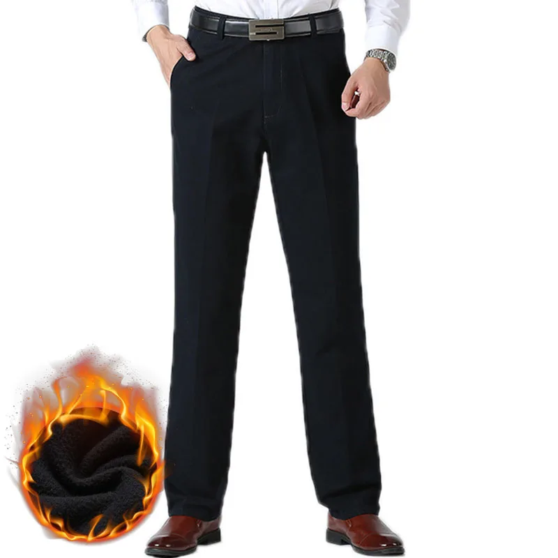 Брюки мужские Зимние флисовые, Классические брендовые теплые плотные длинные модные прямые Стрейчевые штаны для отдыха, Осень-зима 2021