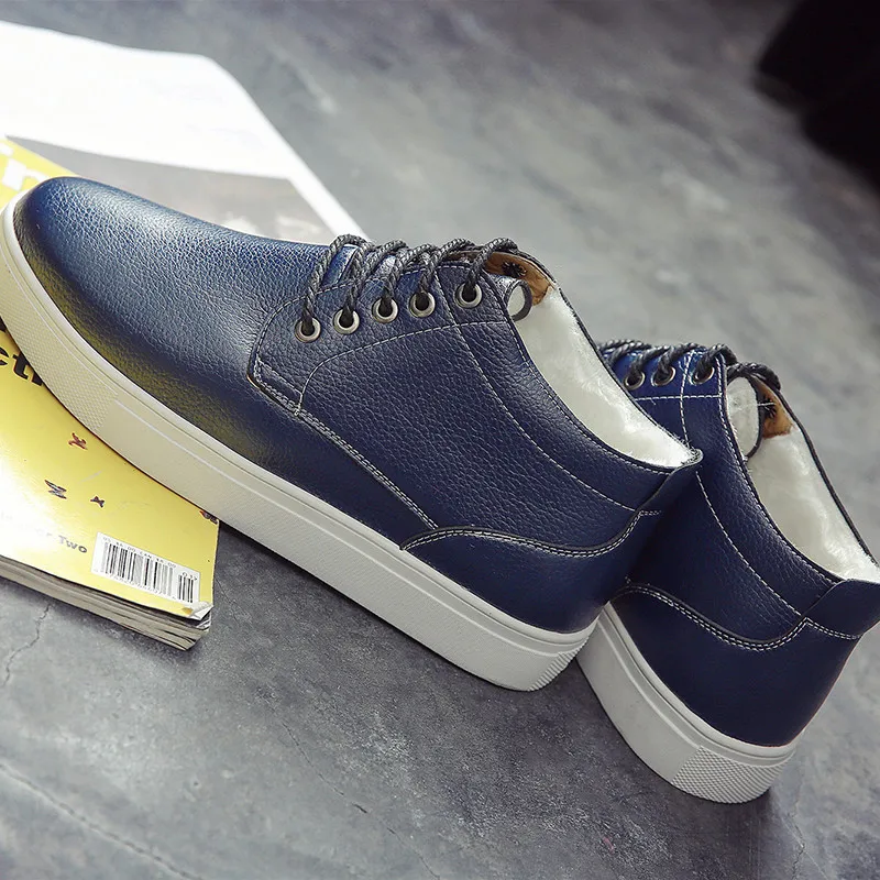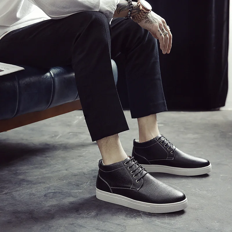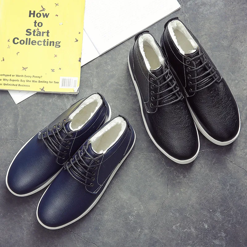 2018 модная зимняя теплая мужская повседневная кожаная обувь с высоким берцем мужская кожаная обувь из хлопка мужская обувь на плоской подошве со шнуровкой большой размер 37-48