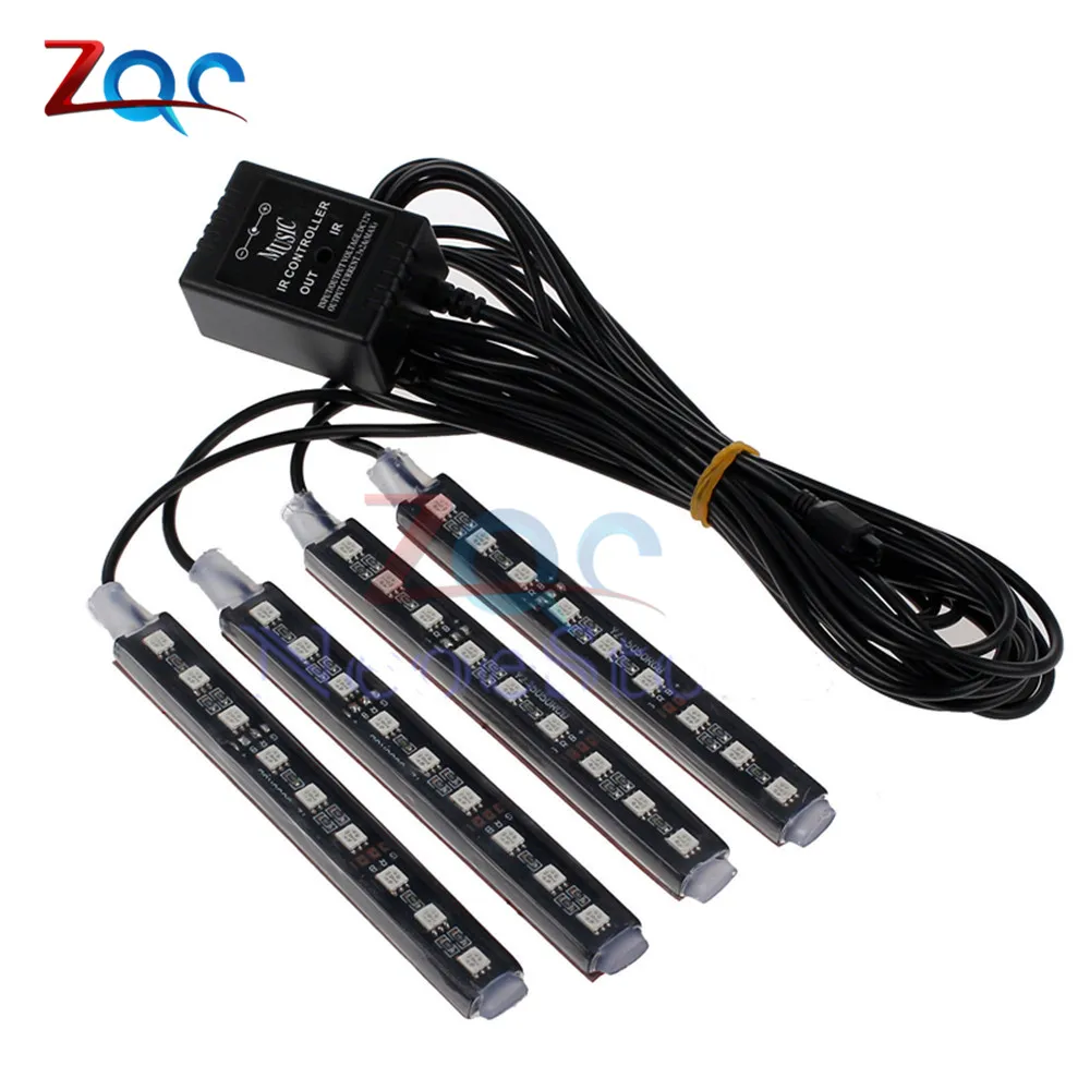 Беспроводное управление музыкой, 7 цветов RGB, комплект автомобильных внутренних огней.