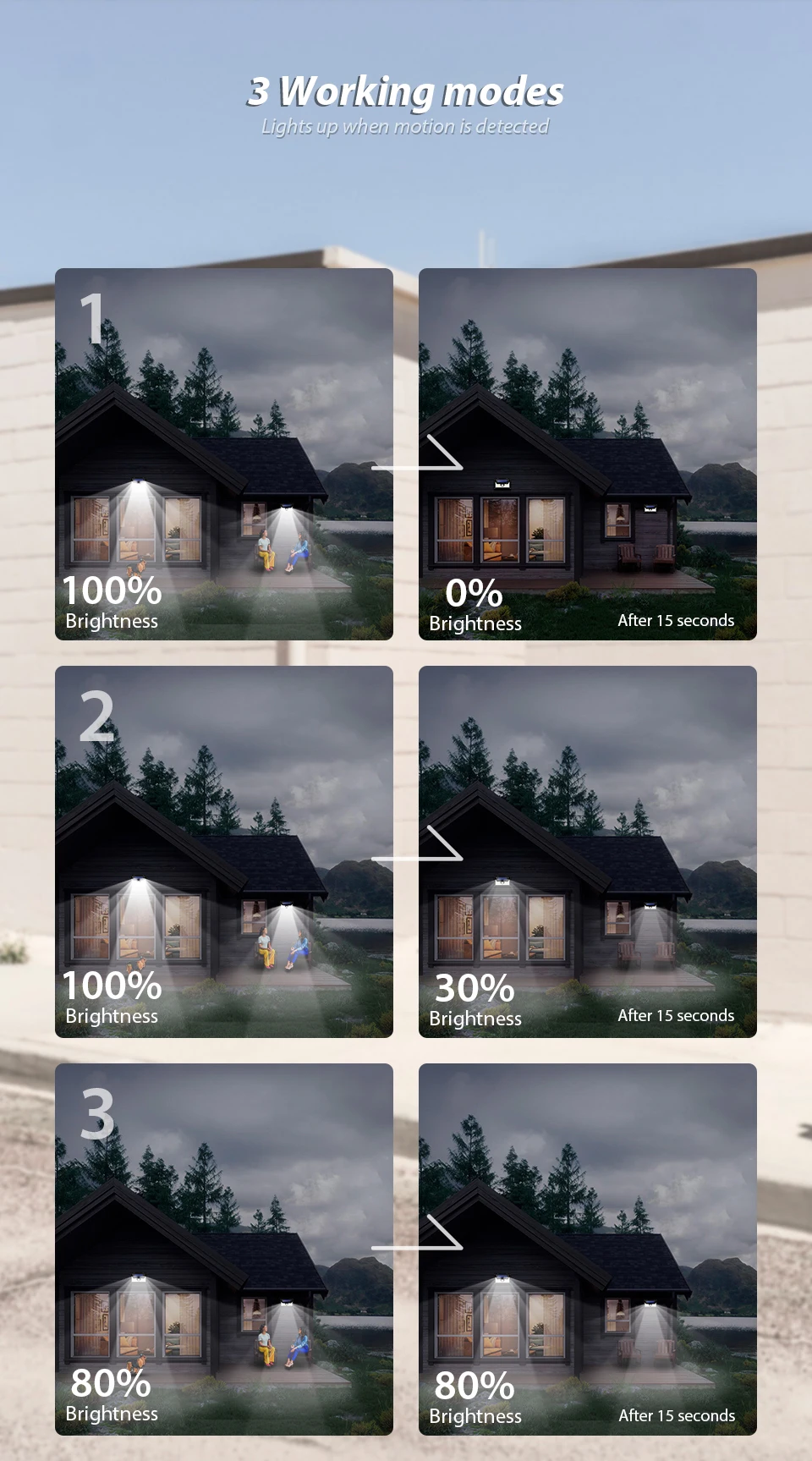Первый покупал три года назад, работает отлично. Год назад купил второй и сейчас третий. Работают во дворе ночью, так настроил. Отлично настраиваются переключателем режимов и заряжаются при очень слабом солнце (свете).