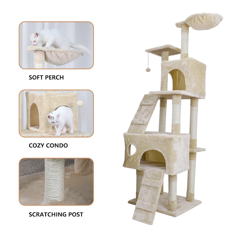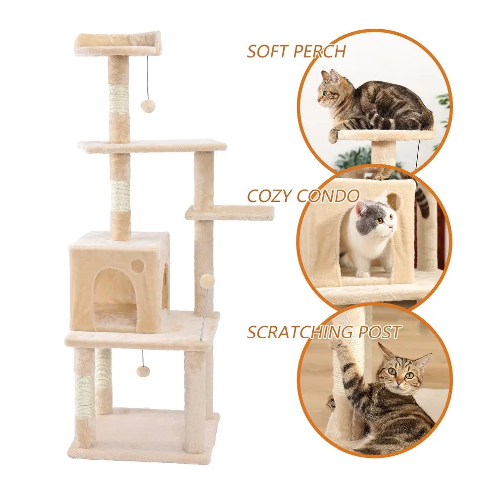 Домик на дереве для кошек, с подвесным шариком, H173CM