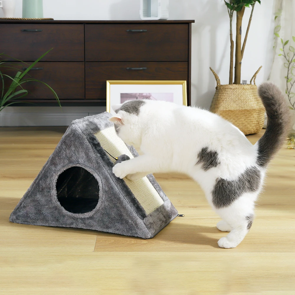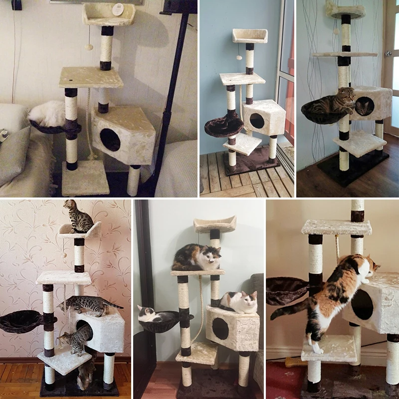 Домик с кошачьим деревом и подвесным мячом, мебель для котят, скребок, игрушка из массива дерева для кошек, рама для лазания, кошачий домик, бытовая доставка