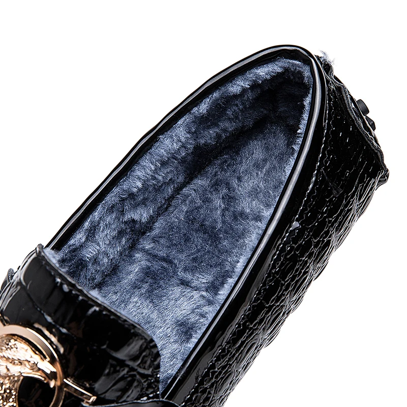 Мокасины ALCUBIEREE мужские кожаные, Теплые повседневные туфли, без застежки, меховые лоферы, плоская подошва, большой размер 48, зимняя обувь