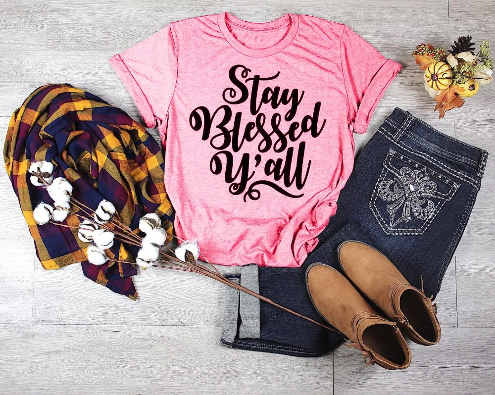 Оставайтесь Blessed Y'all рубашка футболка для христианина Вера с надписью Женская хлопковая Повседневная рубашка в винтажном стиле на День Благодарения эстетическое футболки tumblr Топ