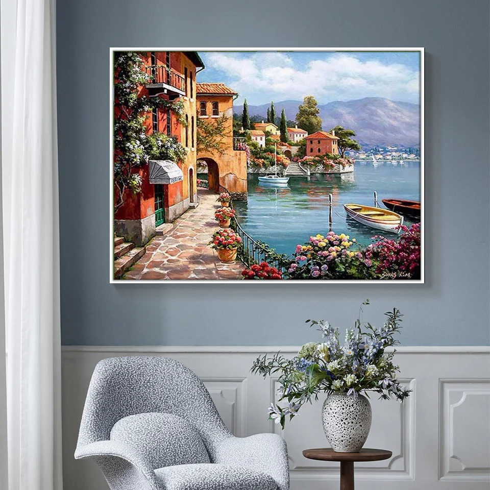 Алмазная живопись 5D "сделай сам", набор для рисования венецианскими курортами, 3D Алмазная вышивка, пейзаж, круглые стразы, картина, пейзаж, домашний декор