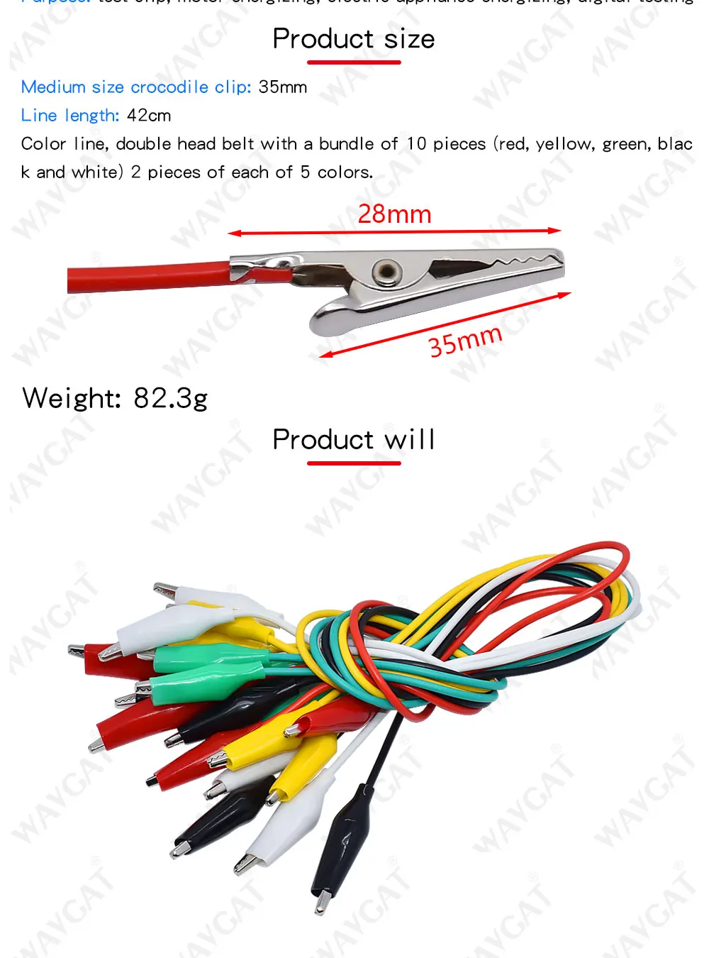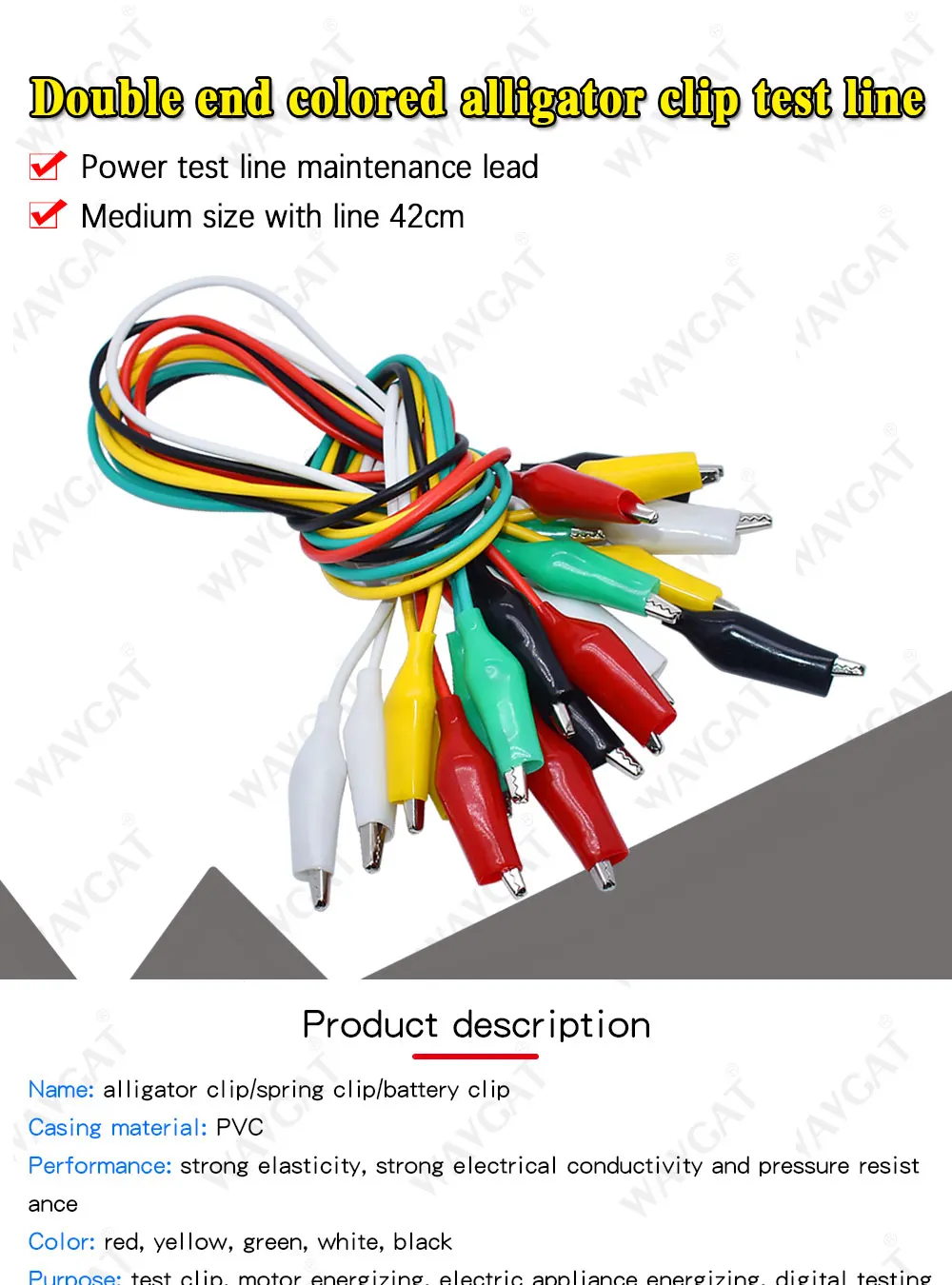 Зажимы типа крокодил WAVGAT, 50 см, 10 шт.