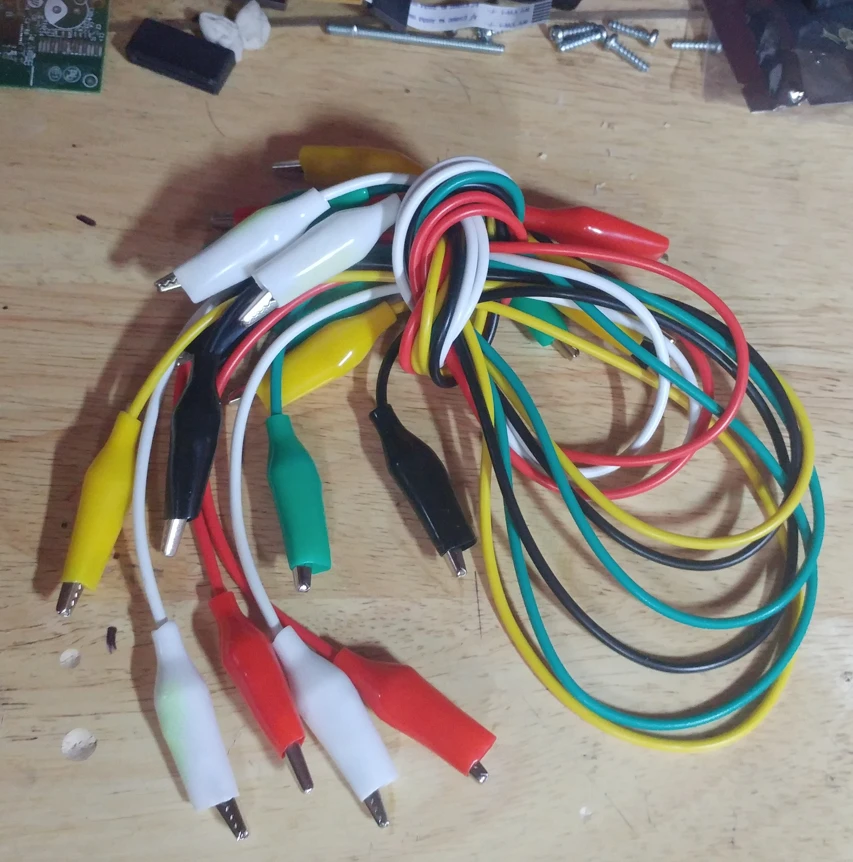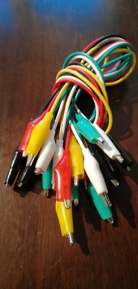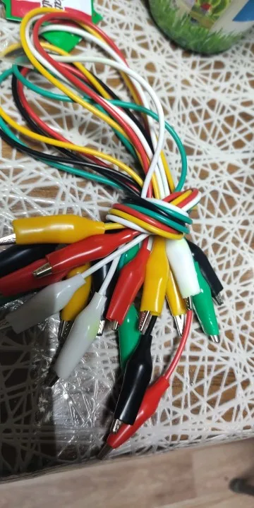 Дешёвый зажимной набор для быстрого подключения электроники. Провода тонкие, к крокодилам не припаяны, просто зажаты. рекомендую капнуть клея на тело крокодила, чтобы изоляция не проворачивалась, либо закрепить иным способом. то, что нужно, когда рано паять или нудно просто подкинуть.