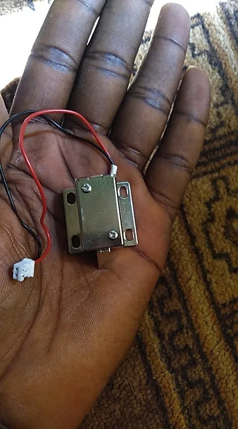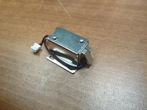 работает отлично, можно запитать от блока питания компьютера. Представляет из себя щеколду на пружине, рядом с которой есть электрический магнит. Поскольку это индуктивная нагрузка, то на входе надо поставить конденсатор на 16-22 пф, для сглаживания индуктивных выбросов. Ставьте как можно ближе к катушке
