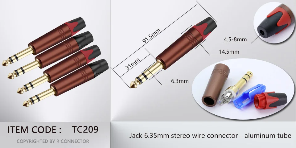 2 шт. 6,35 мм разъем 3-полюсный стерео Sophomore основной усилитель микрофон 6,3 мм разъем 14 штекер