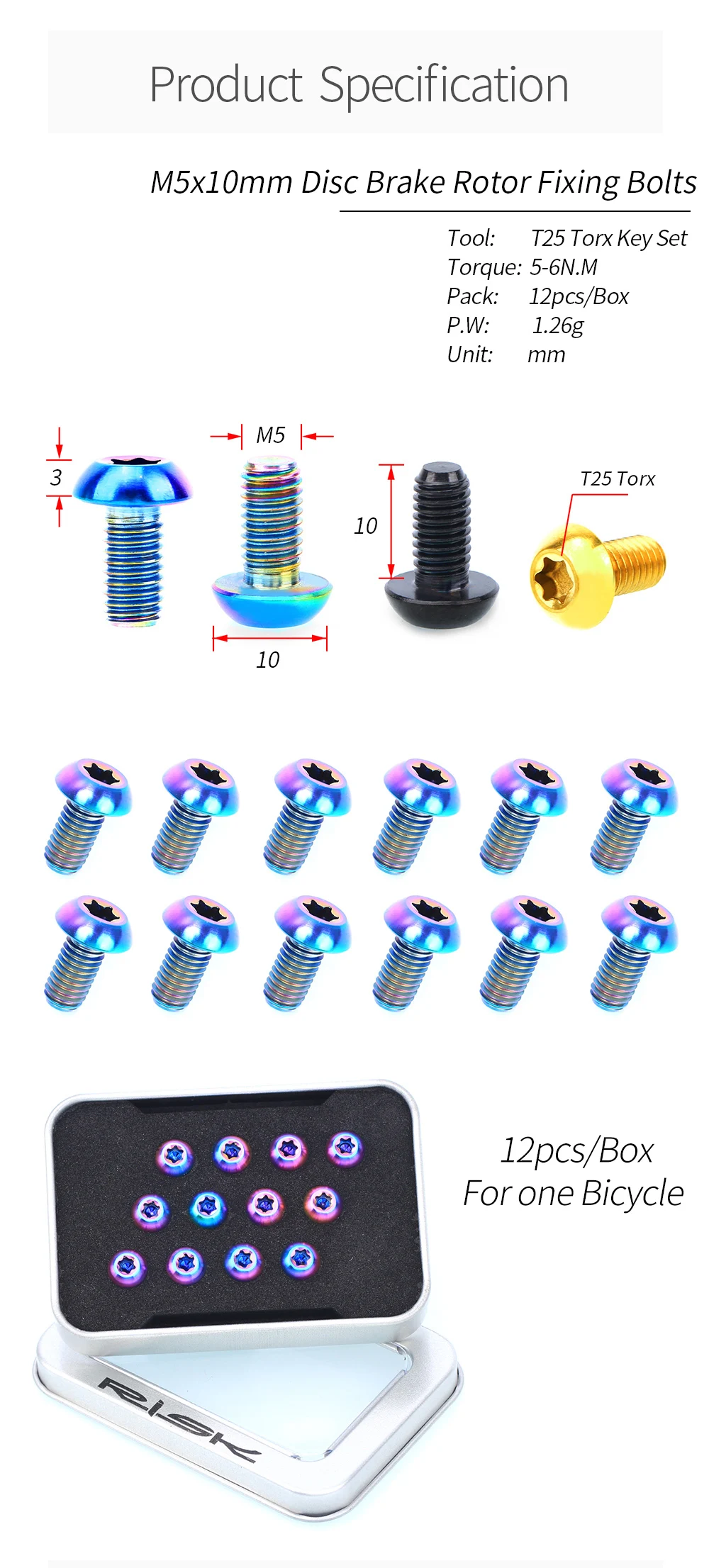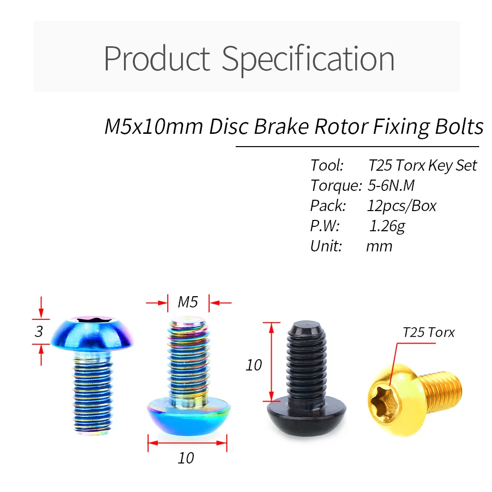 Болты Крепежные для ротора дискового тормоза T25 из титанового сплава, 12 шт.компл. M5x10mm Torx, для горного и дорожного велосипеда