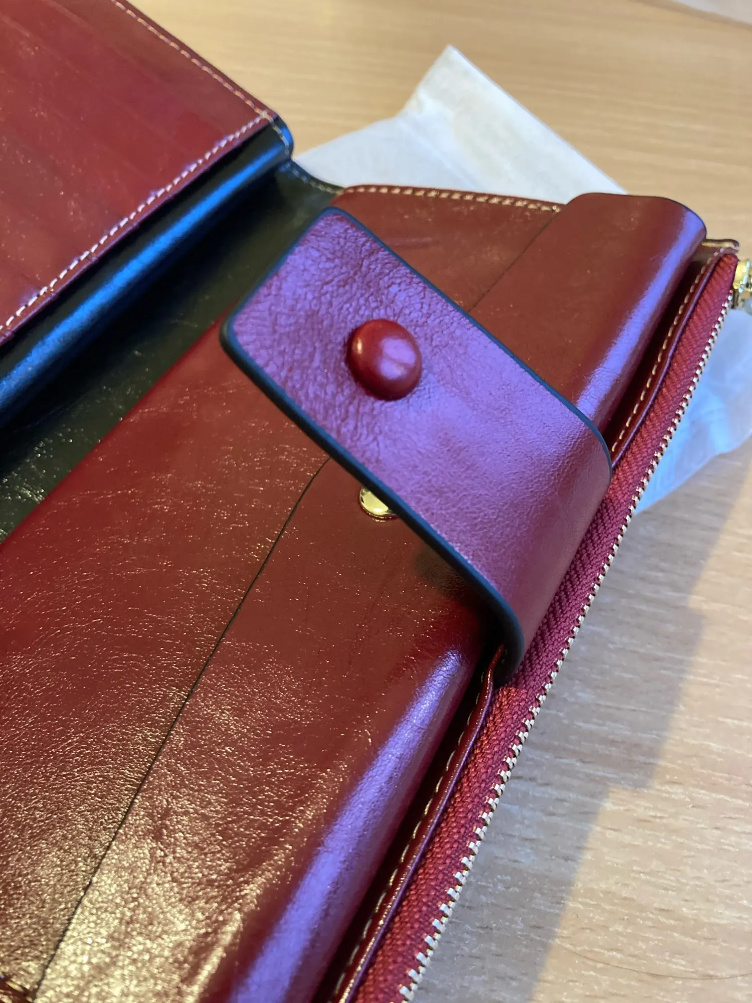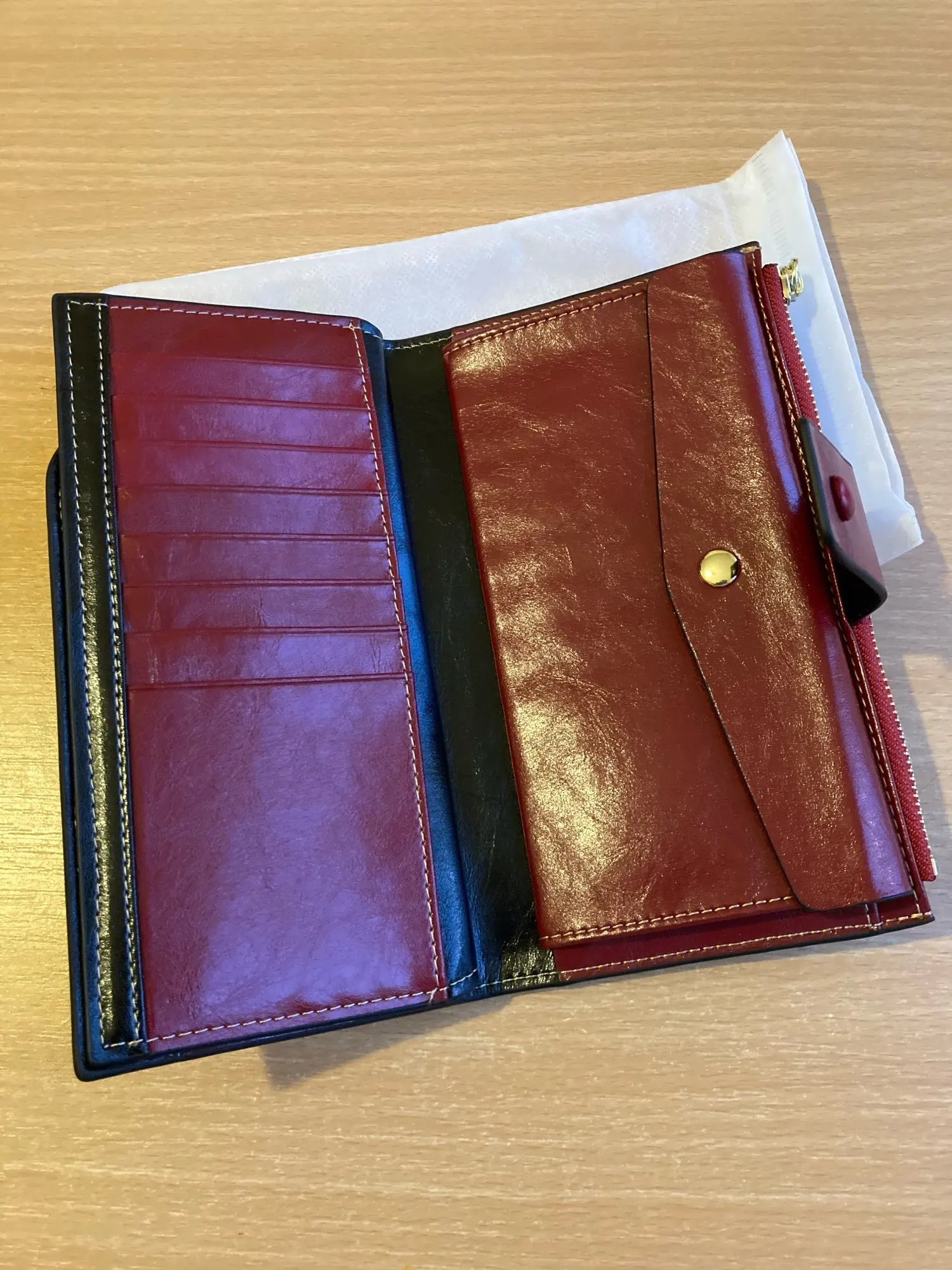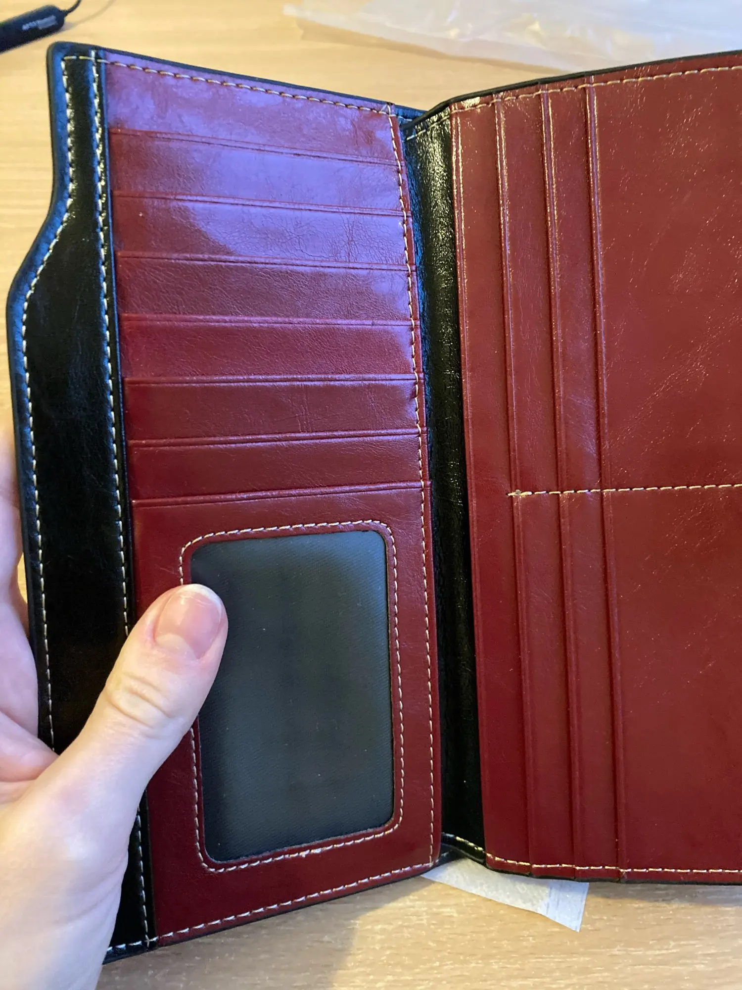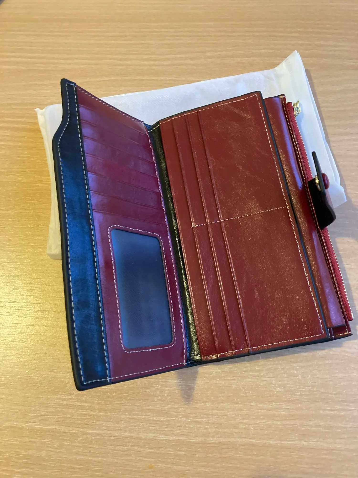 Отличное качество продукции и доставка по расписанию. Имеет достаточно отделений, чтобы положить все карты, деньги и документы. Спасибо!