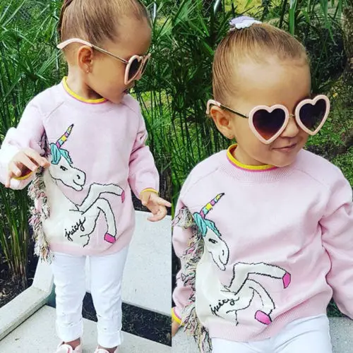 Детская толстовка с единорогом для маленьких девочек, теплая одежда, топы!