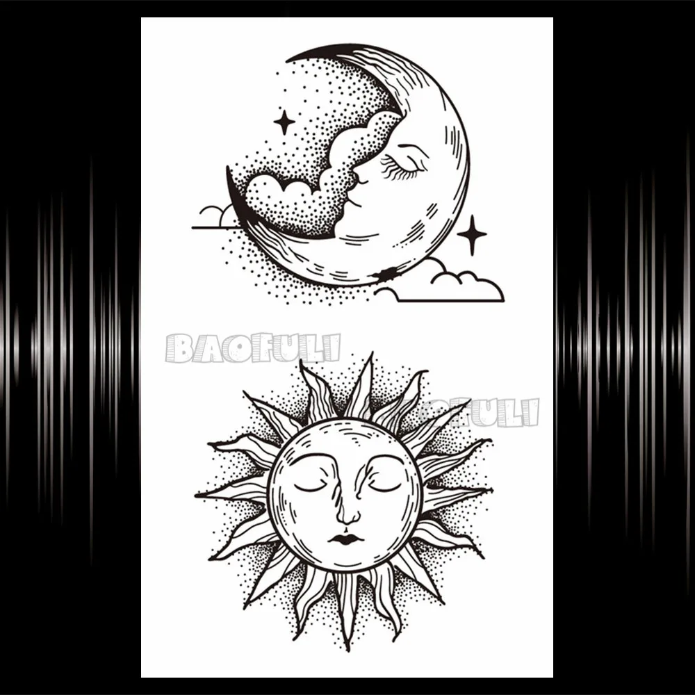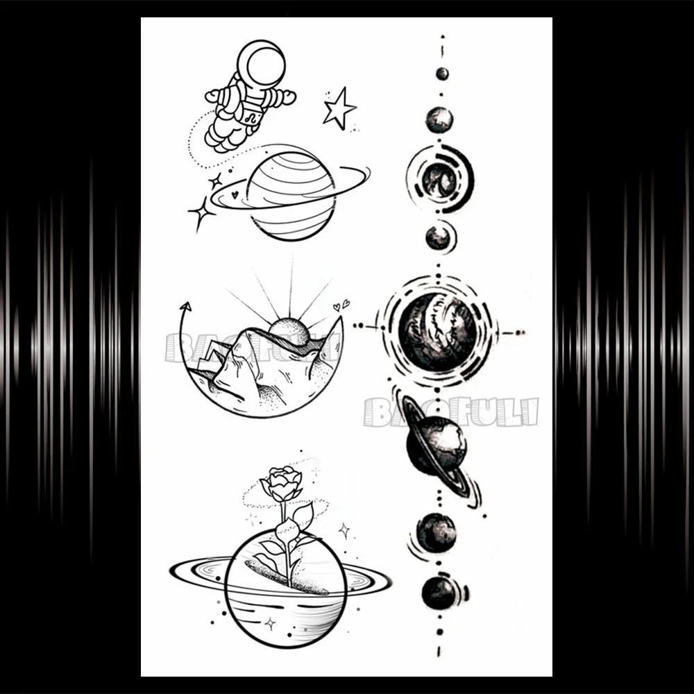 Baofuli водостойкая Временная наклейка Геометрическая планета Медуза Татуировка черный треугольник татуировки тело рука мужчины фальшивые татуировки цепи