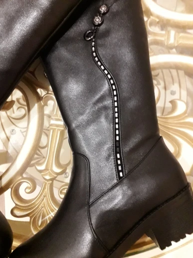 Получила сапоги, а они оказались просто из кожезаменителя, хотя указано в описании, что натуральная кожа. Зачем так нагло врать покупателям? Они близко не лежали с кожей. Неужели вы думаете , что все такие дураки и не понимают и не отличают натуральную кожу от искусственной. Помимо того, на обоих сапогах не было в некоторых местах стразиков. В общем отвратительное настроение. Не зря у людей негативное отношение к китайским товарам, а производители ещё больше усугубляют.