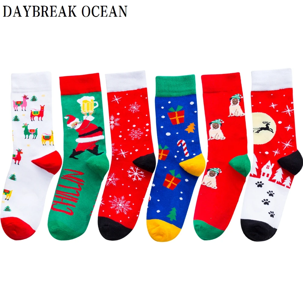 Носки унисекс из чесаного хлопка, на новый год, Рождество, 2019