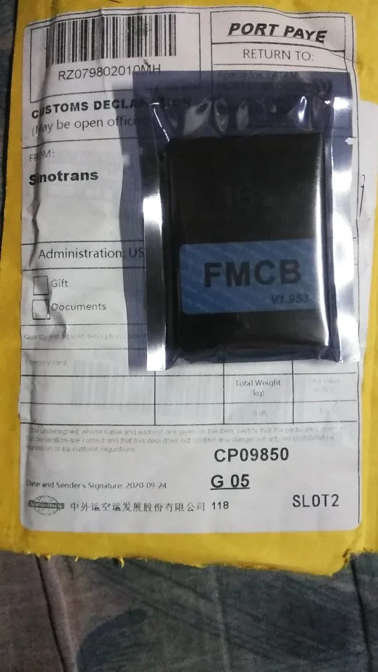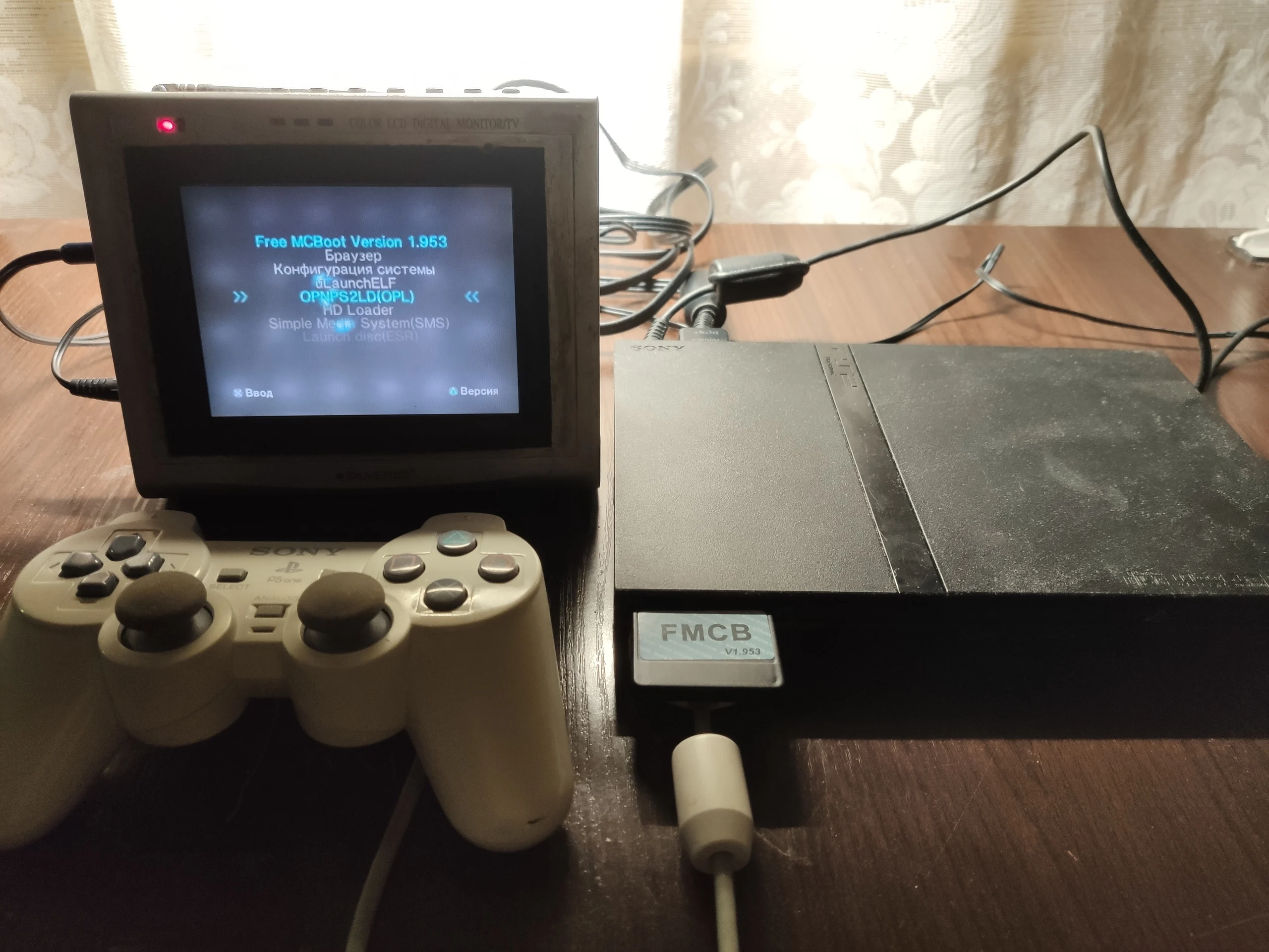 Доставка до Москвы за 2 недели. Вставил и все заработало. Сразу на карте предустановлены эмуляторы SNES и NES (И так-же всякие файловые проводники и, SMS, OPL, ESR). Работает так-же во втором слоте и с другой картой памяти. Также рекомендую после получения карты сделать ее копию на всякий случай если вдруг вы случайно ее сотрете или если она сломается, то есть FMCB залить на вторую карту (при наличии второй карты), в интернете есть гайды как это сделать. А так рекомендую. Ниже фото версии моей консоли.