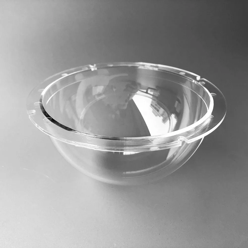 Наша оригинальная полушаровая купольная крышка изготовлена из прецизионной формы и формируется путем литья под давлением. Его точность поверхности чрезвычайно высока, точность может достигать от 1 до 10 микрон, шероховатость составляет менее 10 микрон, и она имеет высокий светильник передачи, низкие искажения, анти-старения и т. Д.