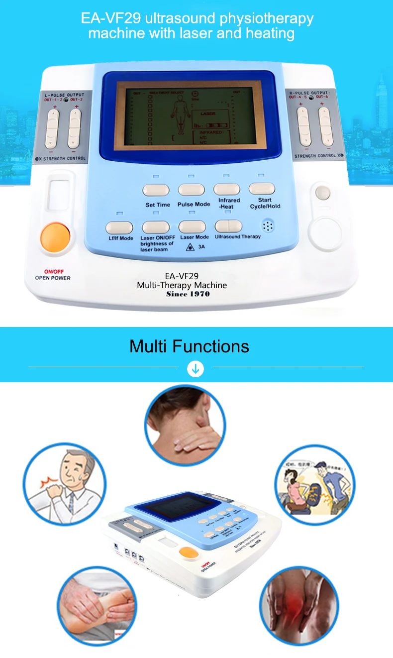 9. Функция ультразвуковой терапии: используется для создания теплых ударов и механических эффектов в организме человека. Этот аппарат, очевидно, функциональен при травмах мягких тканей, болях в мышцах и артрите, гематоме и Цереброваскулярных болезнях.