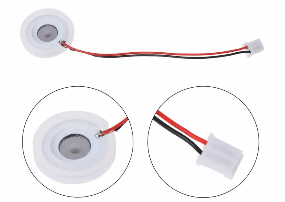 Пьезодиск 108 кГц соответствует описанию. Резиновая втулка, пьезодиск с красной и черной проволокой, термостойкая Втулка и 2-контактный разъем шаг 2 мм.