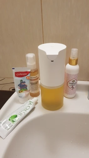 Шустрая доставка. Диспенсер работает. Реагирует на руку быстро. Покупкой довольна