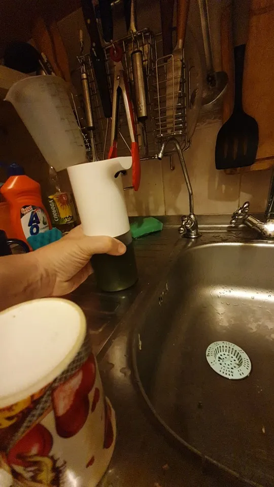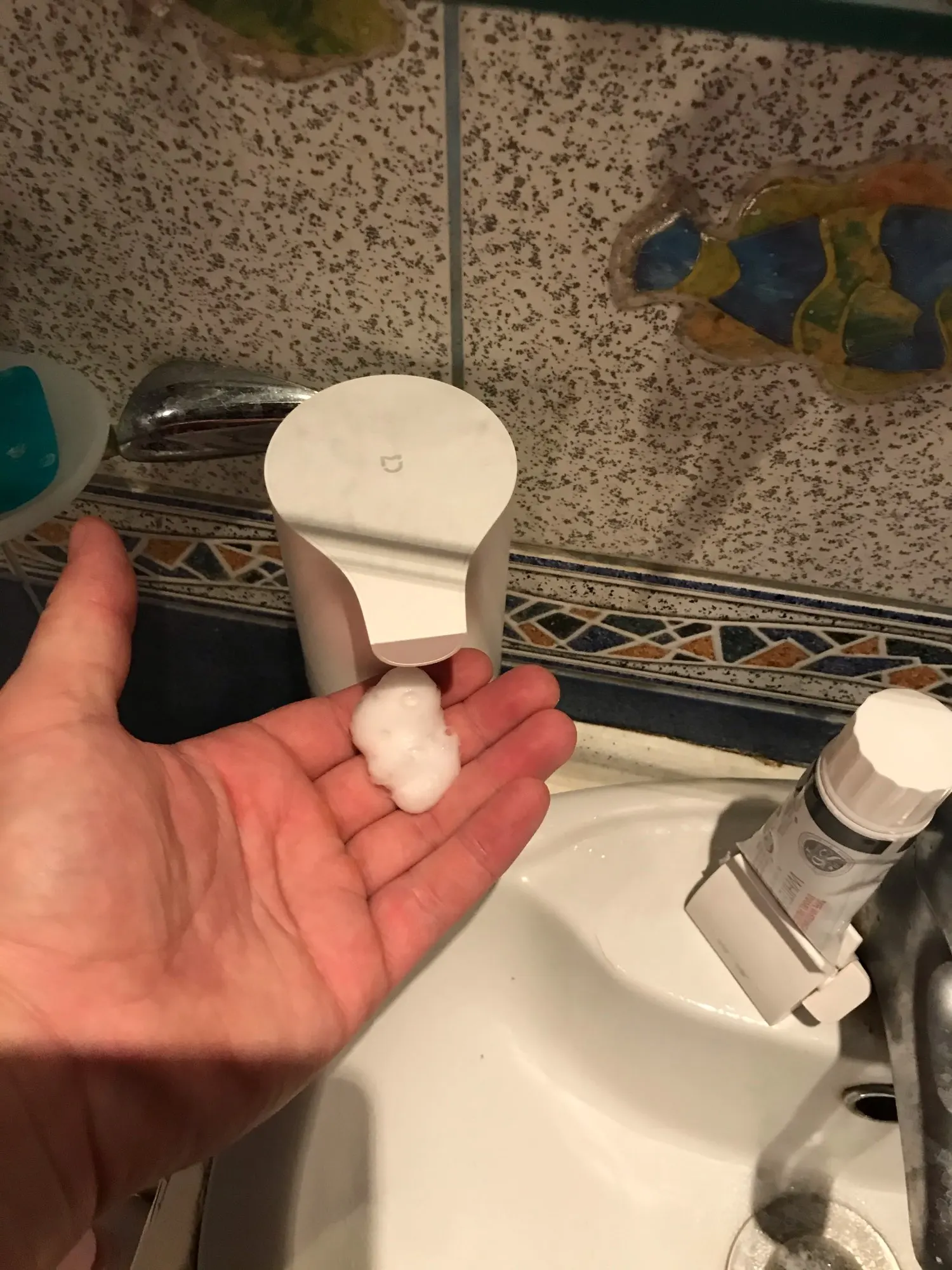 Диспенсер хороший, если разбавить мыло водой, то получается нежная пена. Но диспенсер пришёл в подтеказ от мыла, и сам дозатор и ёмкость пахли мылом и там были следы (фото прикладываю), создалось впечатление, что им кто-то уже пользовался, потом вернул. Возможно их так конечно проверяют на заводе.