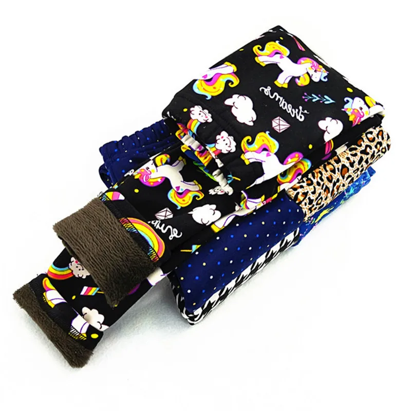 Леггинсы для девочек, осенне-зимние, теплые, с принтом единорога